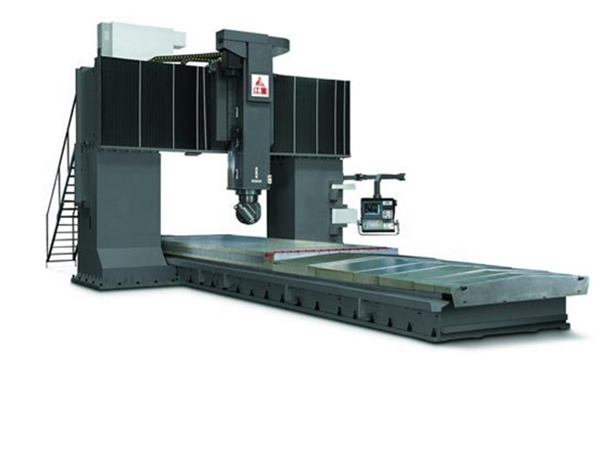 形式劃分按龍門架是否移動(dòng),分為龍門固定工作臺(tái)移動(dòng)式(約占90%以上)和龍門移動(dòng)式(又稱橋式)。橋式龍門銑的特點(diǎn)是占地面積小,承載能力大,龍門架行程可達(dá)20米,便于加工特長或特重的工件。按橫梁是否在立柱